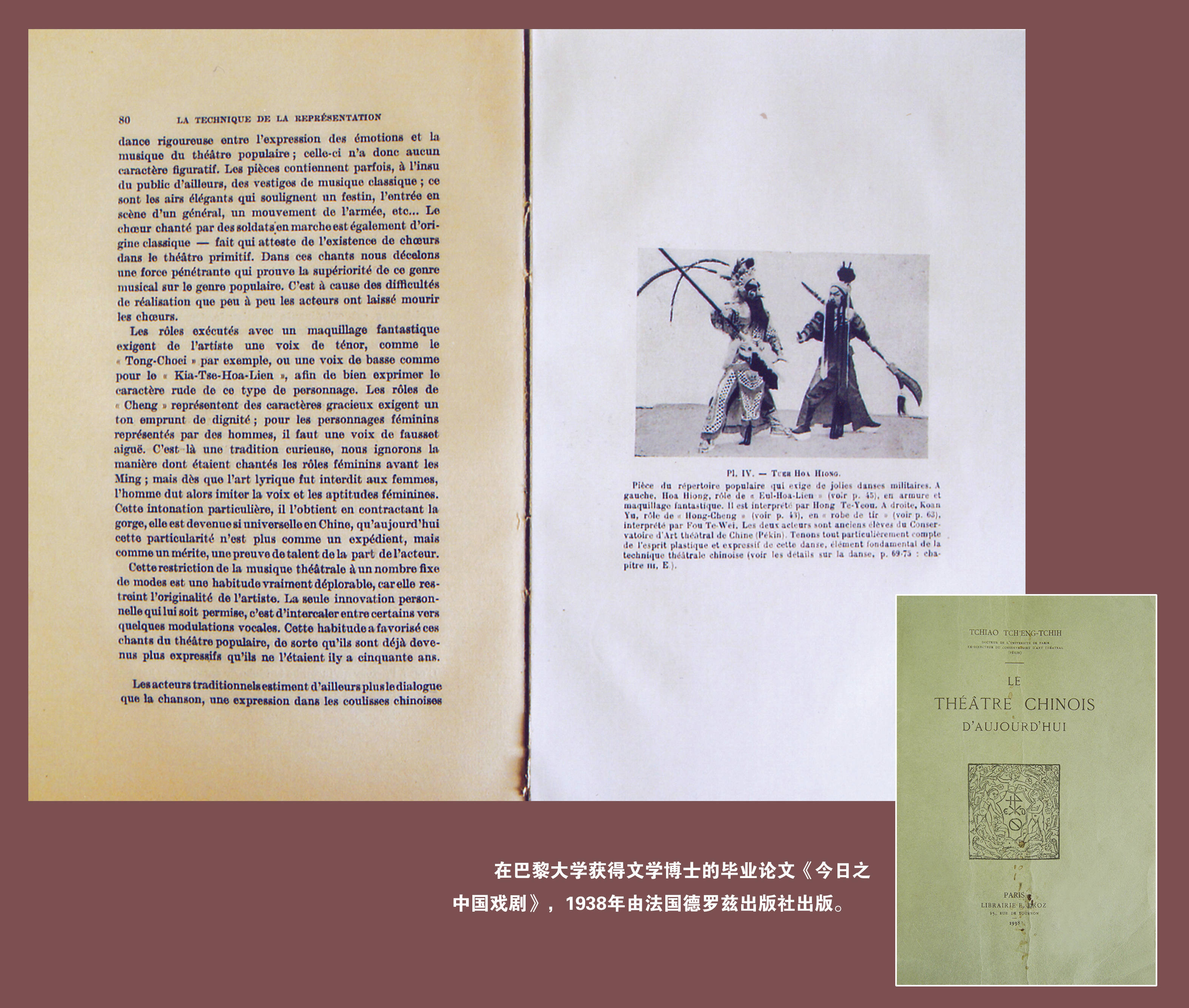 焦菊隐1938年在巴黎大学完成并在法国出版的博士论文《今日之中国戏剧》。(北京人艺供图)早在燕京大学求学期间,焦菊隐便广泛涉猎西方戏剧理论与剧作;毕业后担任中华戏曲专科学校校长,又打下了扎实的戏曲理论和创作基础;远赴法国深造,他在博士论文中以西方戏剧为参照,系统梳理了中国戏曲的历史与现状。