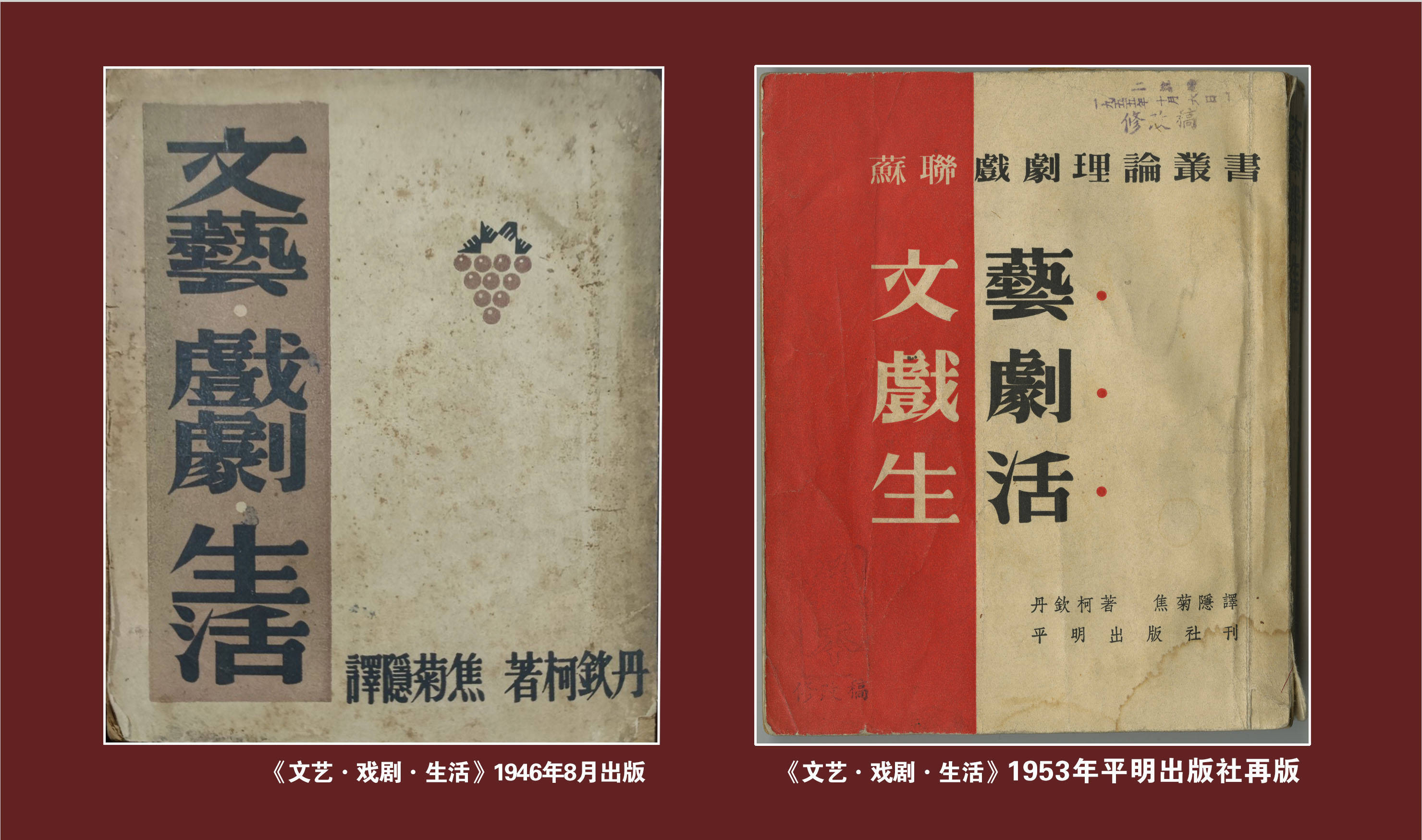 焦菊隐1943年翻译的莫斯科艺术剧院的创建者之一丹钦柯的回忆录。此书对焦菊隐日后特别是在北京人艺的艺术实践和剧院管理产生了深远影响。(北京人艺供图)“焦菊隐将西方戏剧理论与中国传统美学和现实语境相结合,解决了话剧如何表现中国历史、中国现实、中国人精神世界的问题。”中国国家话剧院原常务副院长、导演王晓鹰说,“他的工作,使话剧在中国文化土壤中扎根、开花,获得了本土的生命力。”